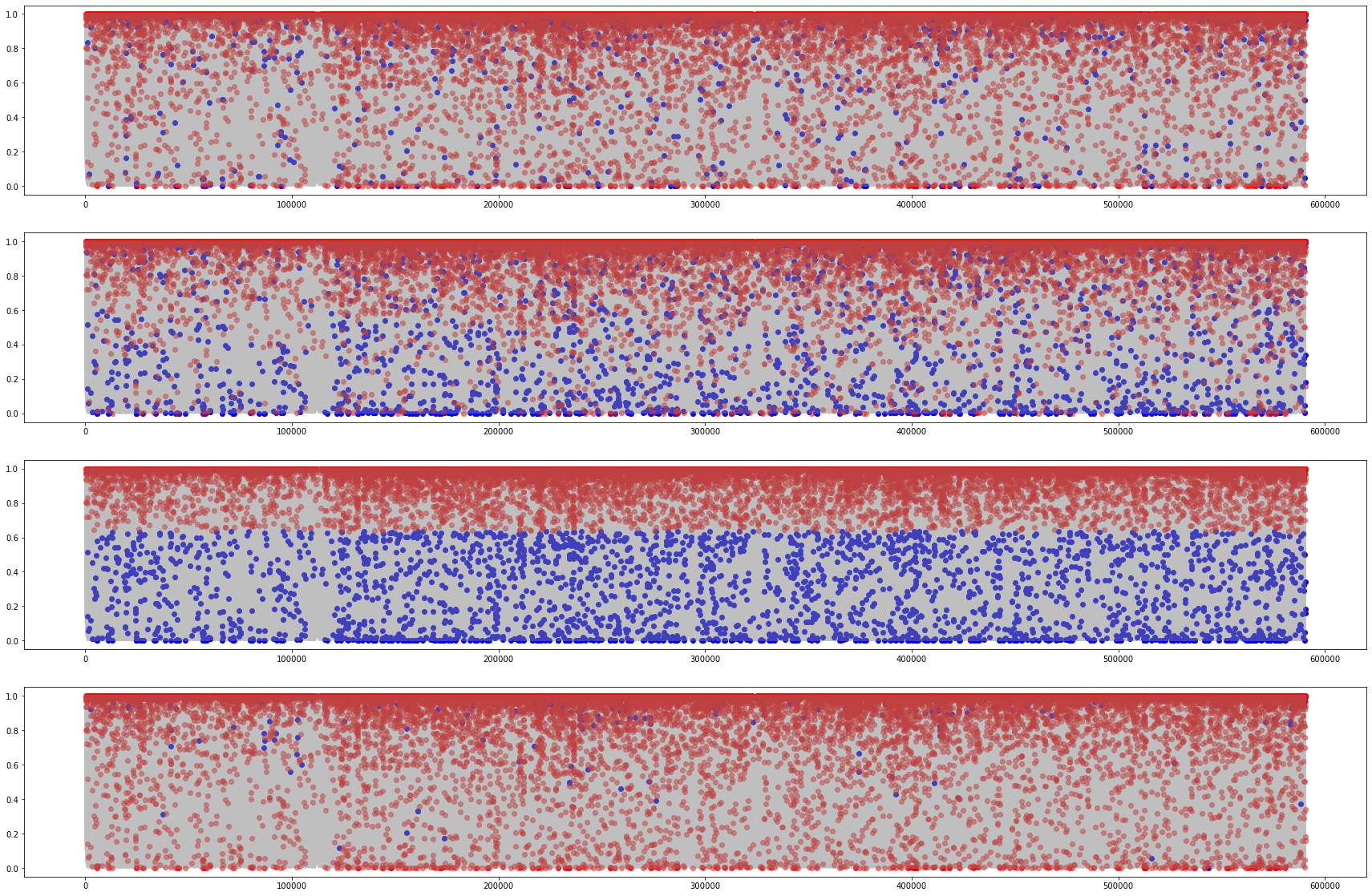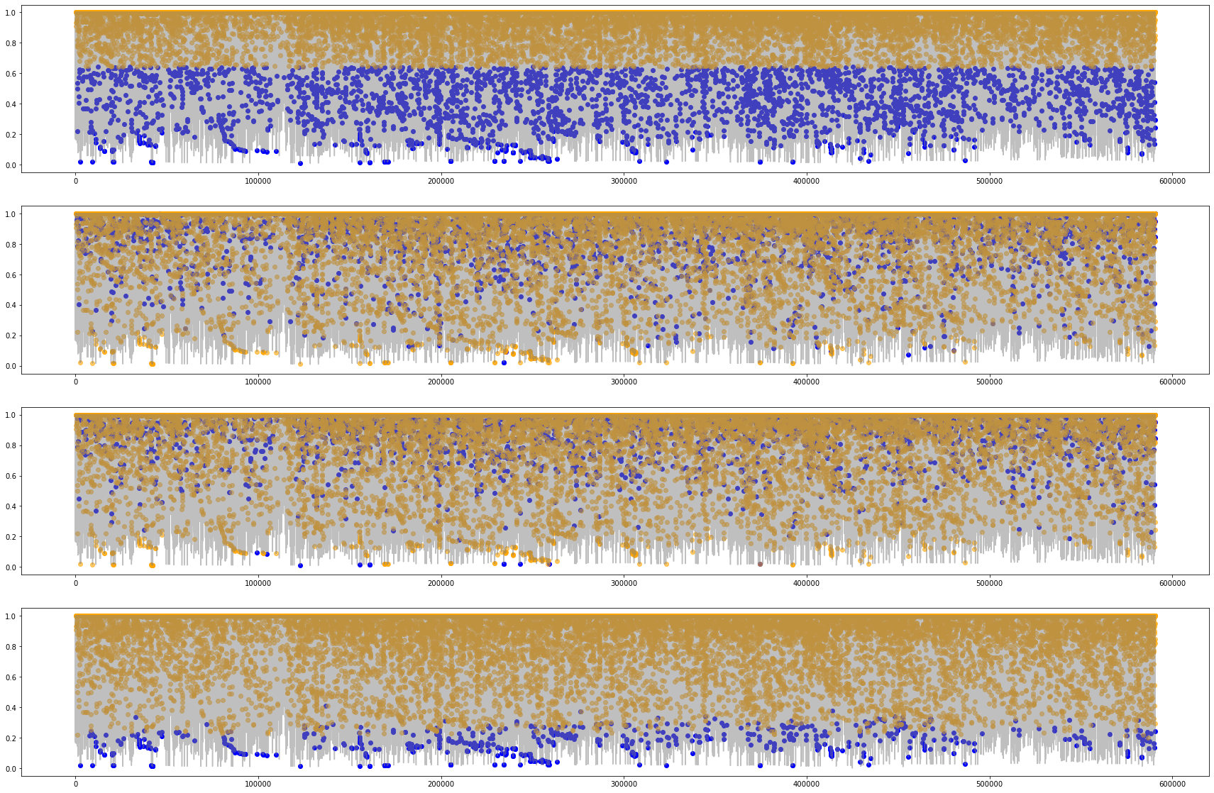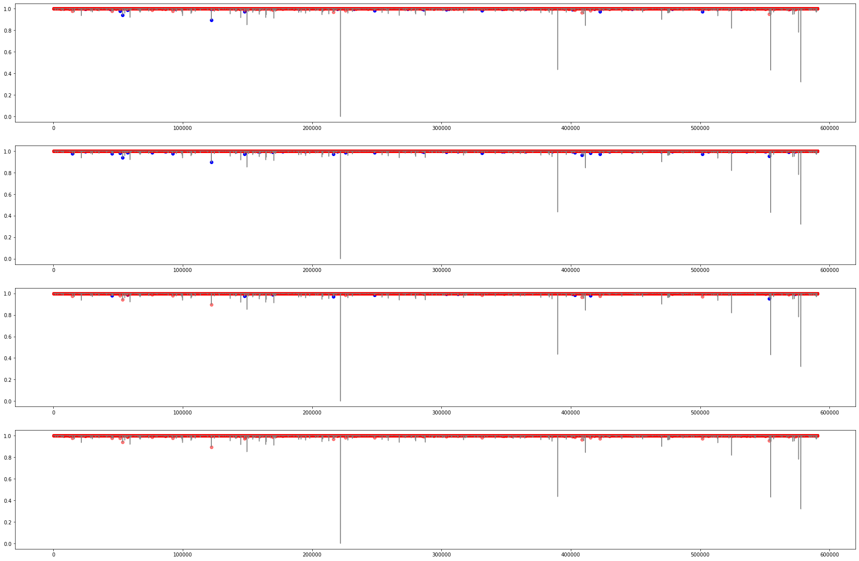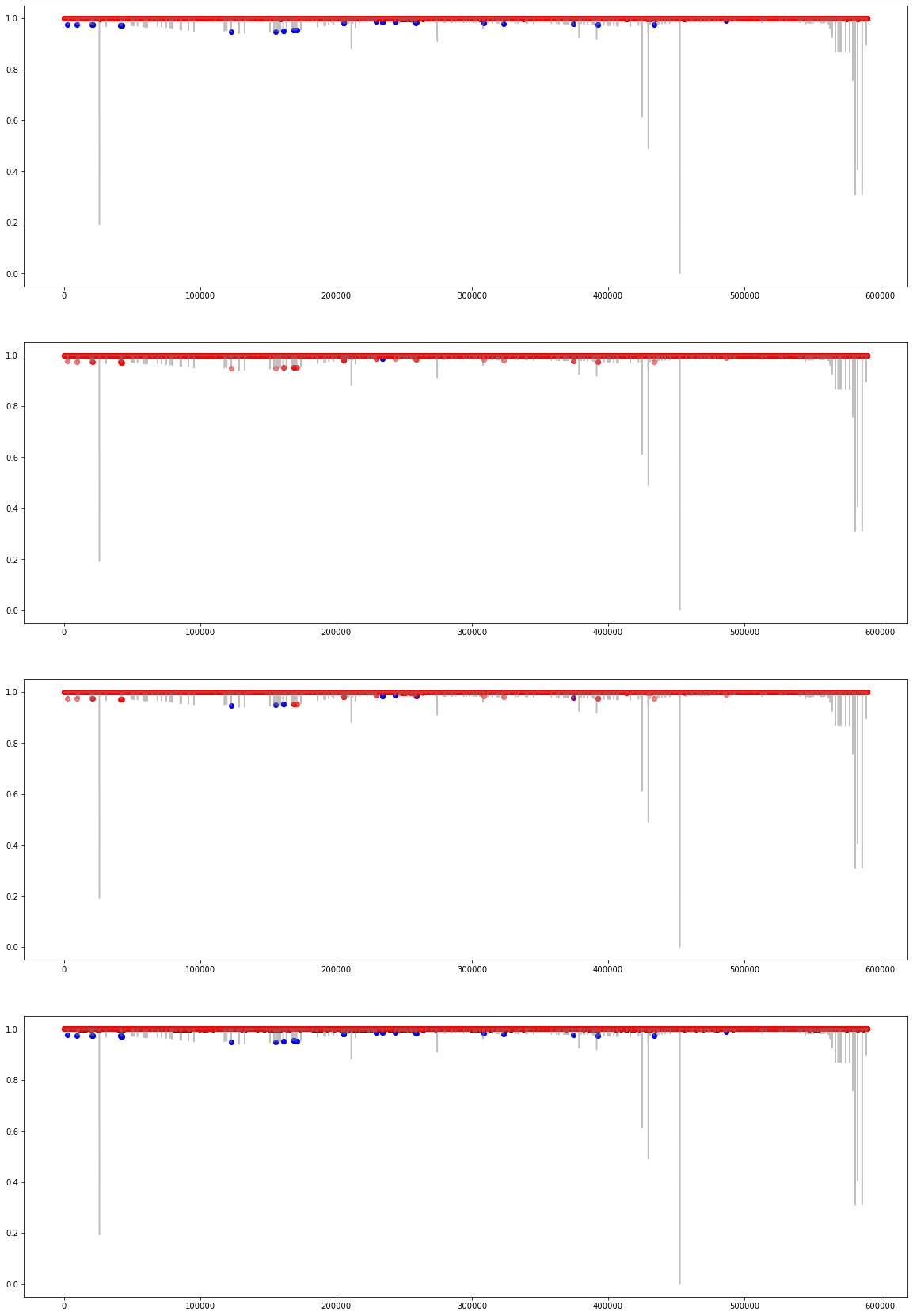 - 3. 그 위에 각각의 방법에서 찾지 못했던 fraud를 주황색/빨간색으로 찍었다.