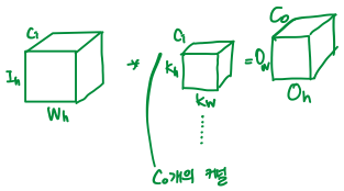 즉, input과 커널의 채널 수는 동일 해야 한다.