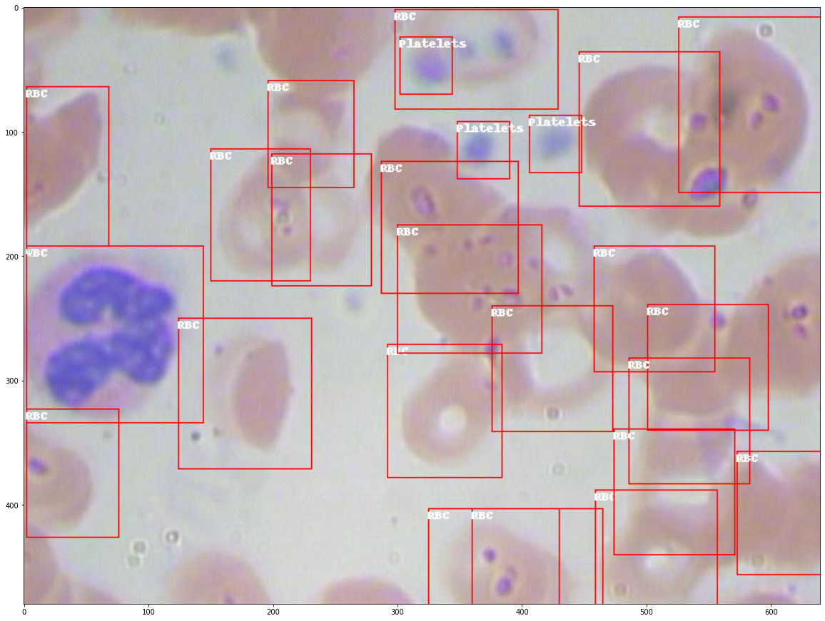 클래스의 분포는 아래와 같다. RBC가 적혈구 WBC가 백혈구, 그리고 Platelets는 혈소판이다. 보면 굉장한 클래스 간 불균형이 있음을 알 수 있다. 불균형은 안 좋다! 왜냐하면 RBC에 대한 데이터가 많기 때문에 감지하는 모든 boudning box를 여차하면 다 적혈구로 탐지해버릴 수도 있기 때문이다. 뭐 그건 그렇다.