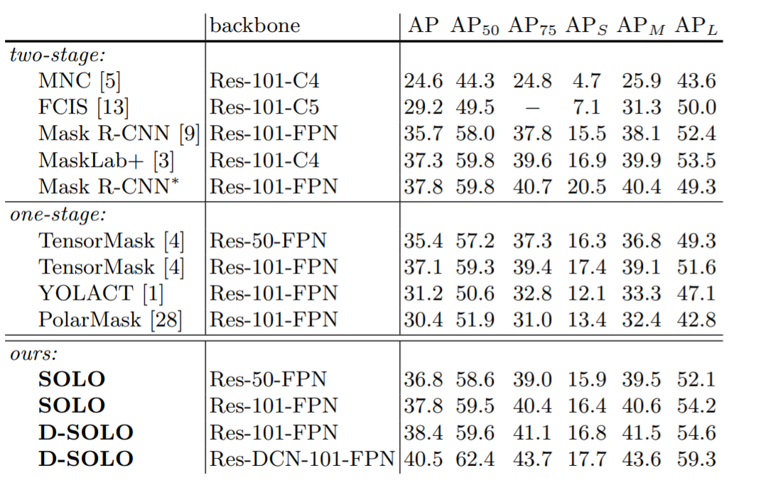 따라서 중심점의 좌표가 다른 점을 반영하기 위해서 instance category를 도입하고, 사이즈가 다른 점을 반영하기 위해서 FPN을 백본으로 이용했다고 할 수 있다.