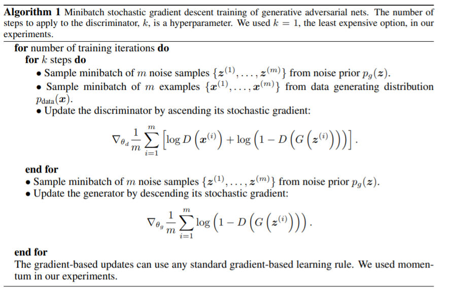 이 때 기억할 것은 D를 여러번 학습한 후 한 번 G를 학습하는 것이 한 세트라는 점이다.