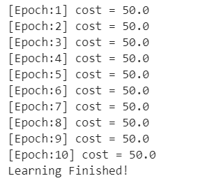 print(f'[Epoch:{i + 1}] cost = {avg_cost}')