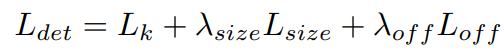 하지만 이 gt heatmap을 만들 때 우리는 당연히 사이즈를 일부 줄이게 된다. 그렇기 때문에 발생하는 offset 불일치가 있는데, 이걸 해결하기 위해서 offset을 위한 loss를 따로 또 만들어준다. 즉 아래의 식을 통해서 center의 좌표를 수정수정하는 것이다.