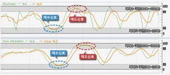 빠른 선 %K 와 느린 선 %D로 이루어짐