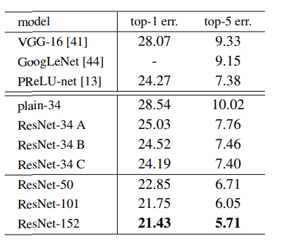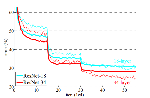 결과를 봤을 때도 레이어 깊은 모델의 error가 더 작은 걸 확인할 수 있다.
