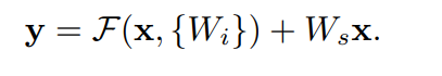 (a) zero padding을 통해 인위적으로 차원을 늘리거나 (2) 아래식(eq.2) 처럼 linear projection을 해줬다고 한다.