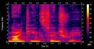 하지만 이 waveform을 분석하지는 않고, 푸리에 변환을 거쳐서 spectrogram 이라는 형태로 변형해서 분석에 이용한다. 스펙토그램은 아래와 같이 생겼다. waveform을 스펙토그램으로 변환하는 과정은 음성 데이터 분석에서 feature extraction 인 셈이다. 이 스펙토그램에서 우리가 찾고자 하는 text를 분석한다.