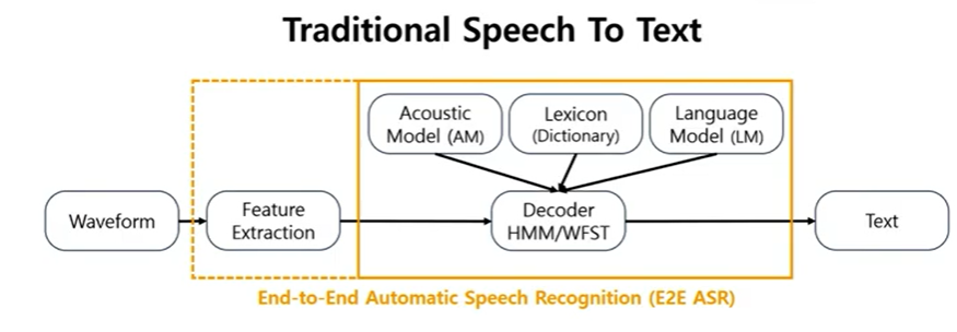 - Alignment(위치 정렬): 몇 초부터 몇 초가 어떤 단어에 해당하는가? (보통 딥러닝으로 때려맞춤)