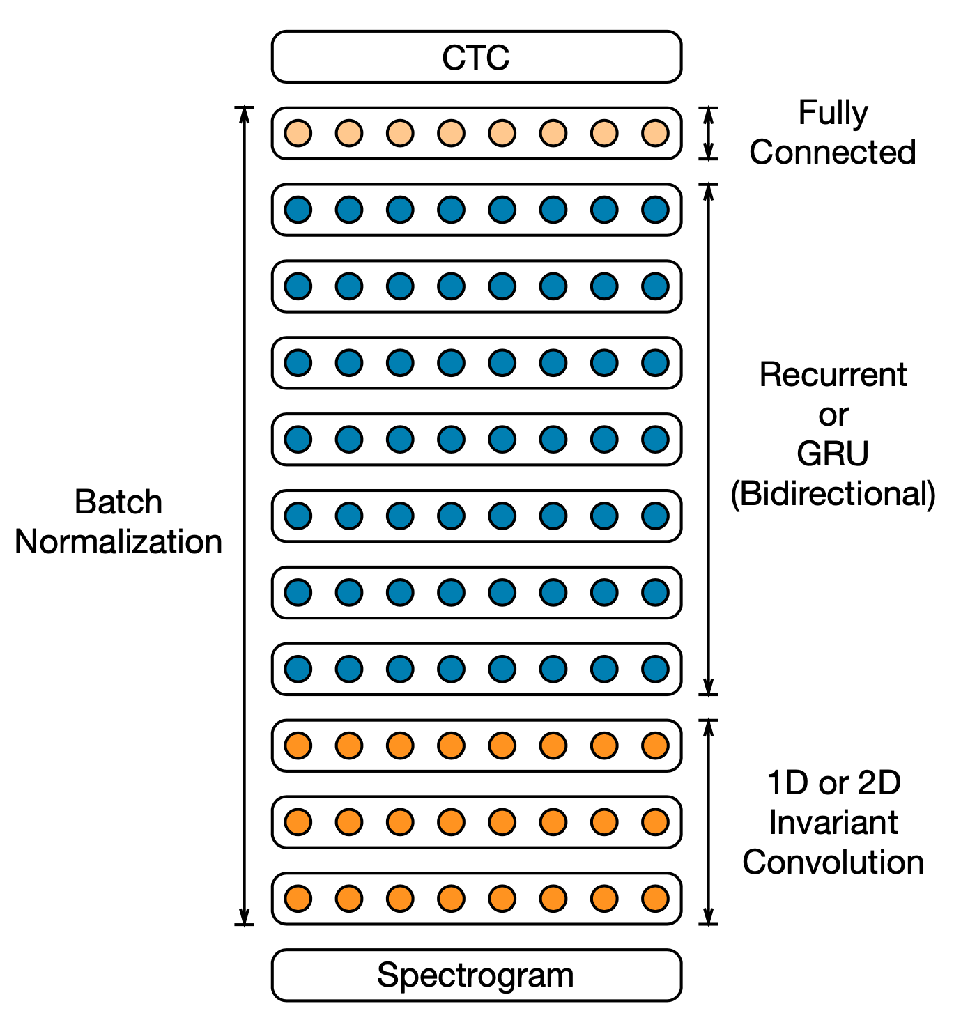 스펙토그램이 들어오면 그걸 CNN 과 RNN 그리고 FC layer를 거쳐서 최종적인 CTC를 산출한다.